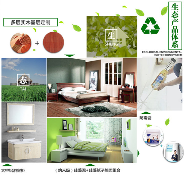 纯实木工厂定制、蓝天豚水性硅藻泥+硅藻腻子、太空铝浴室柜、防霉瓷填缝剂独创四大核心环保产品, 彻清隐患至细节,长期防治更科学。