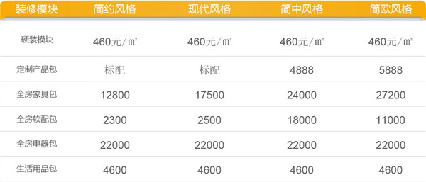 全房基础装修、定制家具、移动家具、全房电器、软装配饰、生活功能用品一应俱全。