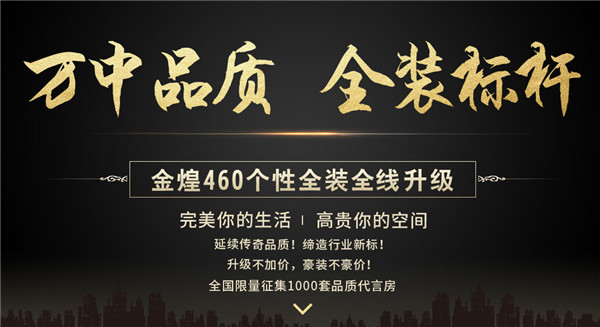 金煌460个性全装全线升级,质升价不升,豪装不豪价!1000套高端品质代言房正面向全国火热征集中,意向业主可拨打免费热线电话:400-0504-188。