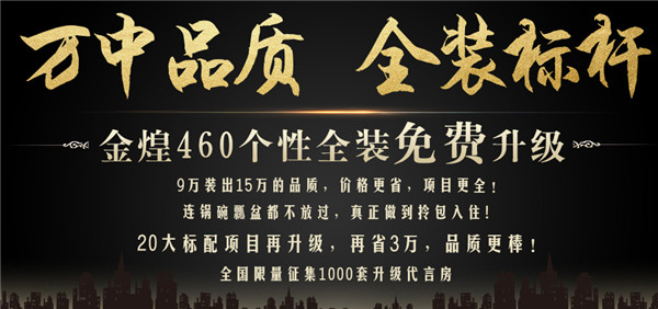 金煌装饰喜迎“金九银十”,9月,460个性全装20大标配项目再升级,质升价不升,万中品质不豪价!全国征集1000套品质代言房,长沙限量280套,想知道还有哪些更多品质好礼?欢迎致电400-0504-188了解。