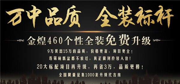 金煌460个性全装全线升级期间,除将延续460元/平米起全装底价不变,更重磅推出水管、地板、移动家具、家用电器、强电线、弱电线、木制作、橱柜、卧室门、灯具、移门、卫浴五金、石材、开门面板、防水、木制作五金等20项关键项目免费升级钜惠,凭借联盟优势将高端材料拉下价格神坛,装修新房所用主材、软装配饰、家具家电、生活功能用品以厂价直达。