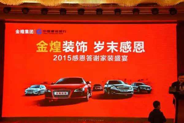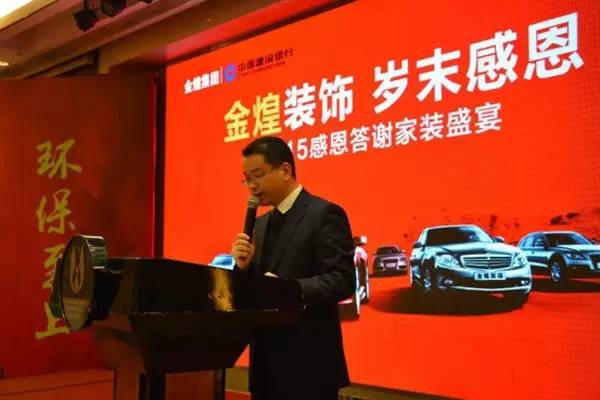 意在感恩回馈新老客户长期以来的支持与厚爱,助力广大业主无忧装修,如意置家,由全国32家门店同步发起,并联盟了建设银行、高端汽车品牌等跨界支持,金煌感恩答谢家装盛宴倾献5000万让利,创就2015年度最强档装修钜惠。在金煌装饰总裁胡乾的致辞声中,本场盛宴正式开始。