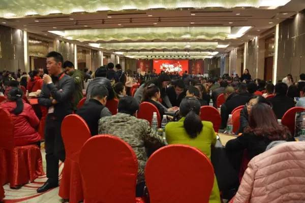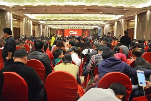配合渐浓的年味,喜庆红色染遍宴会厅,现场一片温暖、热闹。一批批客户的到来, 更是升温了气氛,签到处、会务厅,人头攒动,常德、衡阳、怀化、岳阳、宁乡、株洲......随着各地级分公司客户陆续到场,现场人气持续爆棚,工作人员几度临时增加席位接待客户。为着同一个安家梦,素未谋面的业主齐聚一堂,上千颗注满期待的心在1000平米的宴会厅滚烫。
