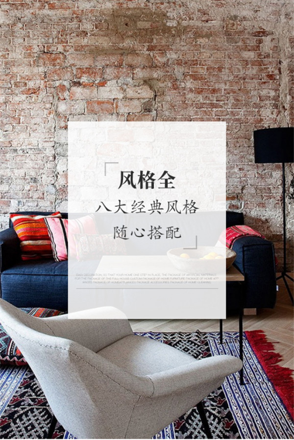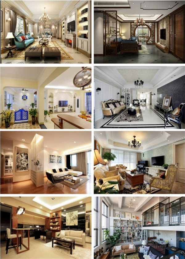 欧式、中式、地中海、美式、简约、田园、现代、LOFT,不同空间可任意选择不同风格进行搭配。