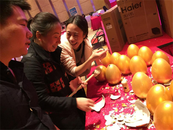 现场业主拉着工作人员细心询问新品及新品示范工程征集详情,表现了极大的兴趣和签定装修意向。据悉,金煌装饰为本次新品示范工程征集,量身推出包含幸运大抽奖、电器大礼包、材料大礼包、设计工艺大礼包、智能大礼包在内的八重装修大礼,此外,还在活动现场设置了总裁签赠、砸金蛋等互动大礼,迎来了一批批业主争相体验,让本来就人气十足的【全装大师】经典系列业主见面会更加火爆。