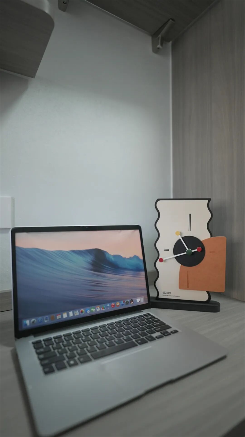 书房以极简设计营造静谧专注的氛围,浅灰蓝墙面搭配木纹与哑光白柜体,构建出沉稳而不失温度的视觉基调。定制一体式书桌与储物柜巧妙结合,最大化利用空间,兼具收纳与办公功能。开放式层架内嵌柔和灯带,不仅提升照明层次,更为空间增添现代感与仪式感。
